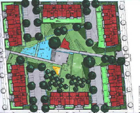 El diseño se apoya siempre en una estructura reticular, donde aparecen tipologías constructivas diversas, pero siempre sujetas a un marco. Es de primordial importancia en la calidad del paisaje urbano la planificación de las alturas y volúmenes de los cuerpos edificados, construyéndose todas las parcelas en esquina, y consiguiendo una alta densidad utilizando el mínimo suelo. Se consigue, pues, una armonía en el lugar mediante la planificación del espacio viario, espacio construido y espacio abierto sujeto a la retícula.